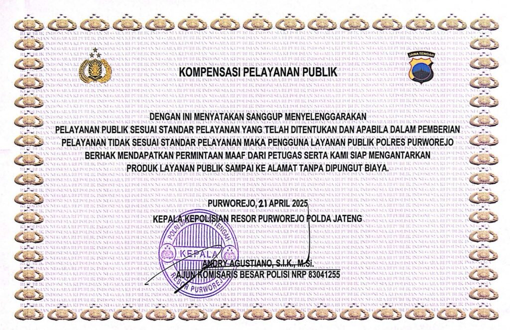 Kompensasi pelayanan publik Polri adalah bentuk pemberian ganti rugi atau solusi atas ketidaksesuaian pelayanan yang diberikan dengan standar operasional prosedur (SOP) yang ditetapkan, seperti yang dijelaskan dalam peraturan kepolisian di tingkat Polres. Bentuk kompensasinya bisa berupa souvenir, layanan antar produk, atau perbaikan gratis untuk produk yang rusak, dan bertujuan untuk mengembalikan kepercayaan masyarakat terhadap institusi Polri.